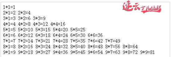 好啦!今天就通过编程实现九九乘法表,仔细看好哦!